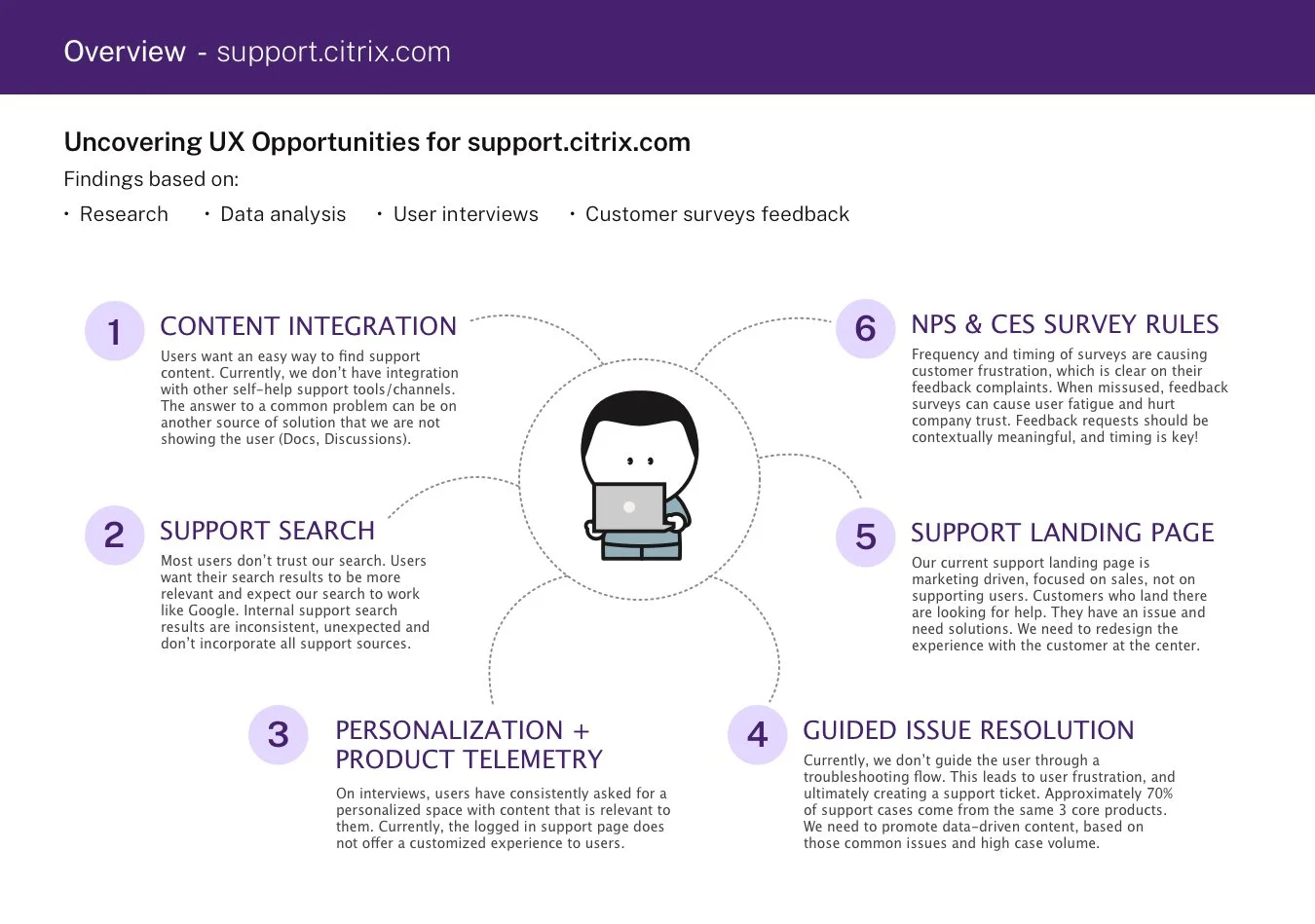 As the Citrix Support UX lead, I wanted to investigate what areas of the support experience could be improved for users.